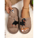 Dameplysj-tøfler med hundebroderi, koselige kordfløyelsslippers, perfekte for avslapning og avslapning hjemme