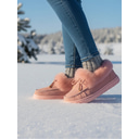 kvinners rosa fuskepelsfôrede vintersko med semsket skinn - koselige varme snøsko for fritidsbruk