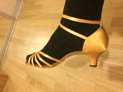Beautiful color, nice quality considering the price. The heel is very comfortable. The stripes are a bit too loose, so curious to see how it goes with dancing planning to wear thicker socks :D .