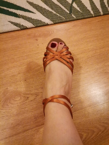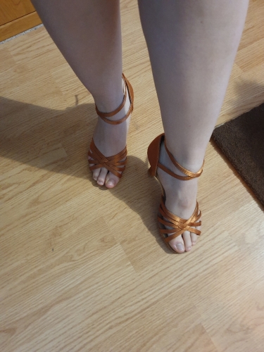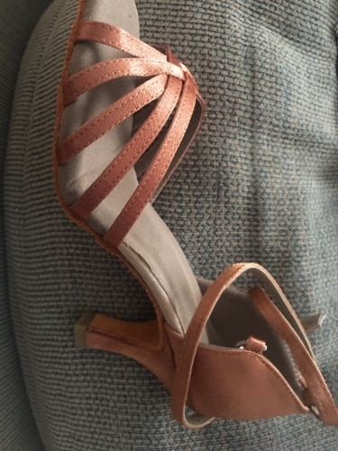 Very happy with the shoes. They look exactly like the pic, happy with the colour and size too. Very comfortable to wear. I wore them for my Bachata class and Im loving dancing in them!