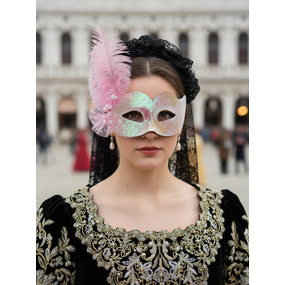 Kobieta z pióropuszem na karnawał wenecki – Kolorowy akcesorium kostiumowe w stylu Mardi Gras wycięte laserowo na imprezy karnawałowe cosplay i wydarzenia festiwalowe