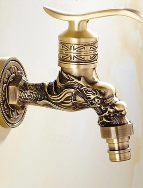 Kran zewnętrzny, do montażu na ścianie antyczny mosiężny kran, ogrodowy wąż dekoracyjny na zewnątrz 1/2 cala połączenie czop rzeźba desigh tylko z zimną wodą