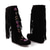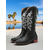 damskie czarne buty typu western z denimu i sztucznej skóry z kwiatowym haftem - sięgające do połowy łydki w stylu kowbojskim, do noszenia na co dzień i na zewnątrz