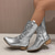 damskie szare haftowane kowbojskie buty westernowe z laserowo wycinanymi detalami – buty jeździeckie w stylu vintage sięgające do połowy łydki, idealne na co dzień i na zewnątrz