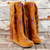 damskie buty kowbojskie w stylu western – zabytkowe buty sięgające do kolan, z ćwiekami, turkusową klamrą i sznurowadłami, idealne na rodeo i do stylu rustykalnego