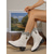 damskie stylowe białe kowbojskie buty do połowy łydki z haftowanymi detalami do strojów codziennych i zachodnich