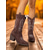 Damskie brązowe zamszowe botki do kostki z łańcuszkiem i paskiem - modne botki w stylu western na grubym obcasie, idealne na co dzień i jesienne wyjścia