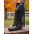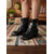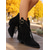 damskie czarne buty motocyklowe ze sznurowaniem z boku i klamrą - stylowe wysokie buty do jazdy konnej