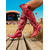Damskie czerwone skórzane kowbojki z haftowanym wzorem westernowym - stylowe, miejskie obuwie do modnych stylizacji