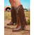 Kowbojskie buty damskie w stylu western z frędzlami – brązowe, sięgające do kolan buty ze sztucznej skóry z haftowanymi detalami, w stylu retro country na rodeo, jesienne festiwale i modę na farmę