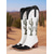 Damskie kowbojskie buty w kolorze brązowym z białymi haftowanymi detalami i blokowymi obcasami, obuwie w stylu boho western