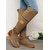 Damskie kowbojskie buty w kolorze khaki do połowy łydki - w stylu western ze sztucznego zamszu z haftowanymi detalami i niskim blokowym obcasem, wygodne kowbojskie buty do jazdy konnej na jesień i
