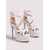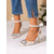 damskie białe sandały na obcasie typu block heel z cyrkoniami – buty na obcasie na wesele, przyjęcie i eleganckie wieczory