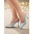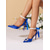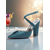 Damskie niebieskie satynowe czółenka na klockowym obcasie z perłowymi zdobieniami i paskiem na kostce – eleganckie buty ze szpiczastym noskiem na oficjalne okazje i koktajle