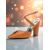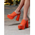 Damskie pomarańczowe zamszowe półbuty typu slingback z kokardą - eleganckie buty nocne ze szpiczastym noskiem na imprezy sylwestrowe i do klubów &uroczystości świąteczne