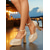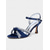 Damskie sandały na koturnie z niebieskimi kryształkami - eleganckie, odkryte palce i pasek na kostkę na imprezy i wieczorne wyjścia