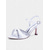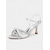 damskie srebrne sandały na pięcie z paskami i zdobieniem z kryształków – błyszczące, odkryte palce, obcasy typu kociak na wieczory koktajlowe i wesela