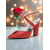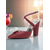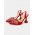 Damskie czerwone szpilki z paskiem z kryształkami - eleganckie buty na imprezę ze szpiczastym noskiem na święta i imprezy &stroje wieczorowe