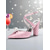 damskie różowe satynowe buty na obcasie typu slingback z dużą kokardą - szykowne buty na koktajlowe przyjęcie dla druhen, wieczorne randki, gości weselnych i wiosenne imprezy ogrodowe