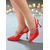 Damskie czerwone, błyszczące czółenka na platformie z paskiem wokół kostki – efektowne szpilki na imprezę, na wieczorne wyjścia i do klubów &imprezy świąteczne, błyszczące eleganckie buty dla modnych