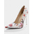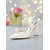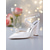 białe brokatowe czółenka z aplikacją kwiatową – eleganckie damskie buty ślubne
