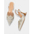 damskie srebrne brokatowe czółenka z odkrytą piętą - błyszczące niskie buty na klockowym obcasie na imprezę na wieczorne wyjścia i imprezy
