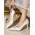 damskie satynowe czółenka na wysokim obcasie w kolorze szampańskim - eleganckie buty z noskiem w szpic i ozdobnymi wstążkami na wesele &przyjęcia koktajlowe