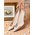 damskie białe sandały ślubne z koronkowymi i perłowymi zdobieniami, na obcasie blokowym, idealne na plażowe śluby i letnie ceremonie