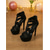damskie czarne zamszowe sandały na platformie z paskami - wysokie obcasy z odkrytymi palcami na wieczorne wyjścia i wyjścia