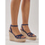 Klasyczne czarne płócienne sandały damskie na koturnie typu espadryle – stylowe dwukolorowe sandały na platformie z noskiem typu cap toe i paskiem na kostce, idealne na rejsy, rejsy jachtowe