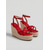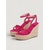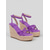 Eleganckie fioletowe sandały espadryle na koturnie, damskie - błyszczące, zdobione kryształkami, na wysokich obcasach z paskiem na kostce, idealne na luksusowe rejsy i wypady na Santorini &letnie
