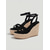 Damskie czarne sandały na koturnie z paskami i espadrylami – wygodne sandały na platformie z juty na wakacje na plaży i letnie imprezy na świeżym powietrzu &stroje boho na rejs