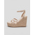 damskie beżowe sandały espadryle na koturnie z paskiem przy kostce - eleganckie buty wieczorowe na wakacyjne kolacje