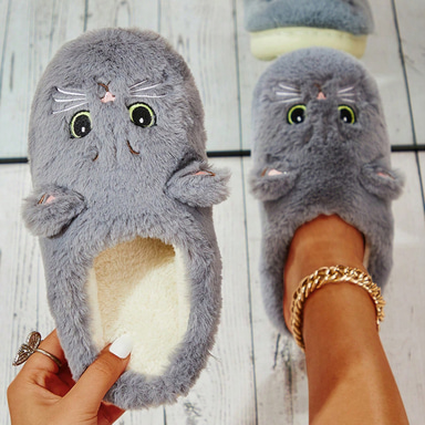 Damskie pluszowe kapcie w kształcie kota – wygodne, futrzane kapcie domowe z uroczym zwierzęcym wzorem na zimę i domowy komfort