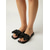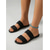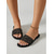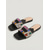 Damskie czarne klapki z metalowymi zdobieniami w kolorze złotym i groszkiem – sandały na platformie z fakturą drewna do luksusowego wypoczynku przy basenie, w hotelowych kurortach &wakacje letnie