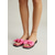 Damskie sandały w żywym różowym kolorze z kokardką – szykowne płaskie kapcie z kwadratowymi noskami i dużymi ozdobnymi węzłami na luksusowe wakacje w hotelu i wypady na plażę &letni wypoczynek w