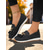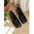 Damskie czarne mokasyny ze sztucznej skóry ze złotą klamrą – wsuwane, płaskie buty na co dzień, do biura i na podróż