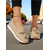damskie beżowe, sznurowane, siateczkowe, wsuwane trampki na platformie z podeszwą typu air cushion - stylowe i wygodne buty casualowe do noszenia na co dzień