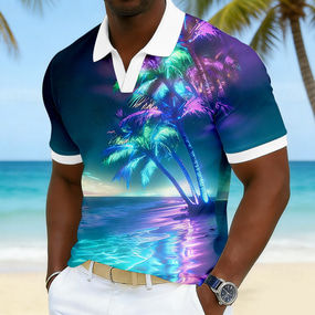 Męskie Ombre Drzewo palmowe Hawajskie koszulki polo Krótki rękaw Koszulki polo W serek Codzienny Ośrodek wczasowy Athleisure Dzienne zużycie Ubrania wakacyjne Druk 3D Wiosna i lato Niebieski Rumiany