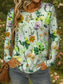 Koszulka damska z długim rękawem okrągły dekolt tunika z grafiką roślin vintage stylowa klasyczna regularne topy codzienny nadruk na weekend żółty niebieski fioletowy pomarańczowy przedwiosna