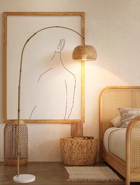 lampa podłogowa lampka nocna lampa stojąca w stylu bambusowym z łukowym ramieniem z drewna lampa podłogowa w stylu wabi-sabi