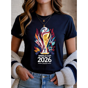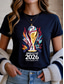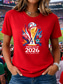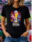 Koszulka damska z nadrukiem meczowym World Soccer 2026, stylowa, klasyczna, codzienna, z krótkim rękawem, okrągłym dekoltem, regularna, codzienna, czarna, różowa, czerwona, atramentowa, niebieska,