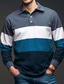 Męskie Kolorowy blok Pasek Koszulki polo do rugby Długi rękaw Koszulki polo Klapa Klasyczny Moda Wzór 3D Nowoczesny Biznes Codzienny Pasek Jesień Zima Granatowy