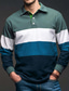 Męskie Kolorowy blok Pasek Koszulki polo do rugby Długi rękaw Koszulki polo Klapa Klasyczny Moda Wzór 3D Nowoczesny Codzienny Sport Pasek Jesień Zima Niebieski Zielony