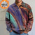 Męskie Abstrakcja Geometryczny Koszulki polo Koszule Themmal Długi rękaw Koszulki polo Klapa Codzienny Athleisure Święto Dzienne zużycie Druk 3D Jesień Zima Niebieski Tęczowy Multi Color