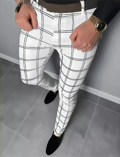Męskie Spodnie Typu Chino Spodnie chinosy Spodnie w kratę Nadruk Siateczka Pełna długość Codzienny Codzienny Spodnie Biały i niebieski Fioletowy Średnio elastyczny
