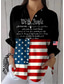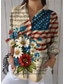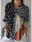 Amerykański Dzień Niepodległości Damskie Podkoszulek Nadruk Graficzny Flaga Ameryki Zabytkowe Elegancki Klasyczny Długi rękaw W serek Zwykłe topy Codzienny Weekend Niebieski Czarny Brudny błękit
