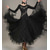 czarna sukienka do tańca latynoskiego dla kobiet z ozdobami z kryształków, wiązaniem na szyi i rozkloszowaną spódnicą – idealna do salsy, tanga i występów