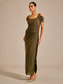 Damskie Sukienka midi Sukienka syrenka Elegancja Impreza Gość weselny Spotkanie towarzyskie Regularny Jednokolorowe Bez rękawów Lejący się dekolt Oliwkowy