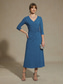 Damskie Sukienka maxi Sukienka kopertowa Sukienka A line Elegancja Codzienny Gość weselny Randka Z marszczeniami Regularny Jednokolorowe Rękaw 3/4 W serek Niebieski
